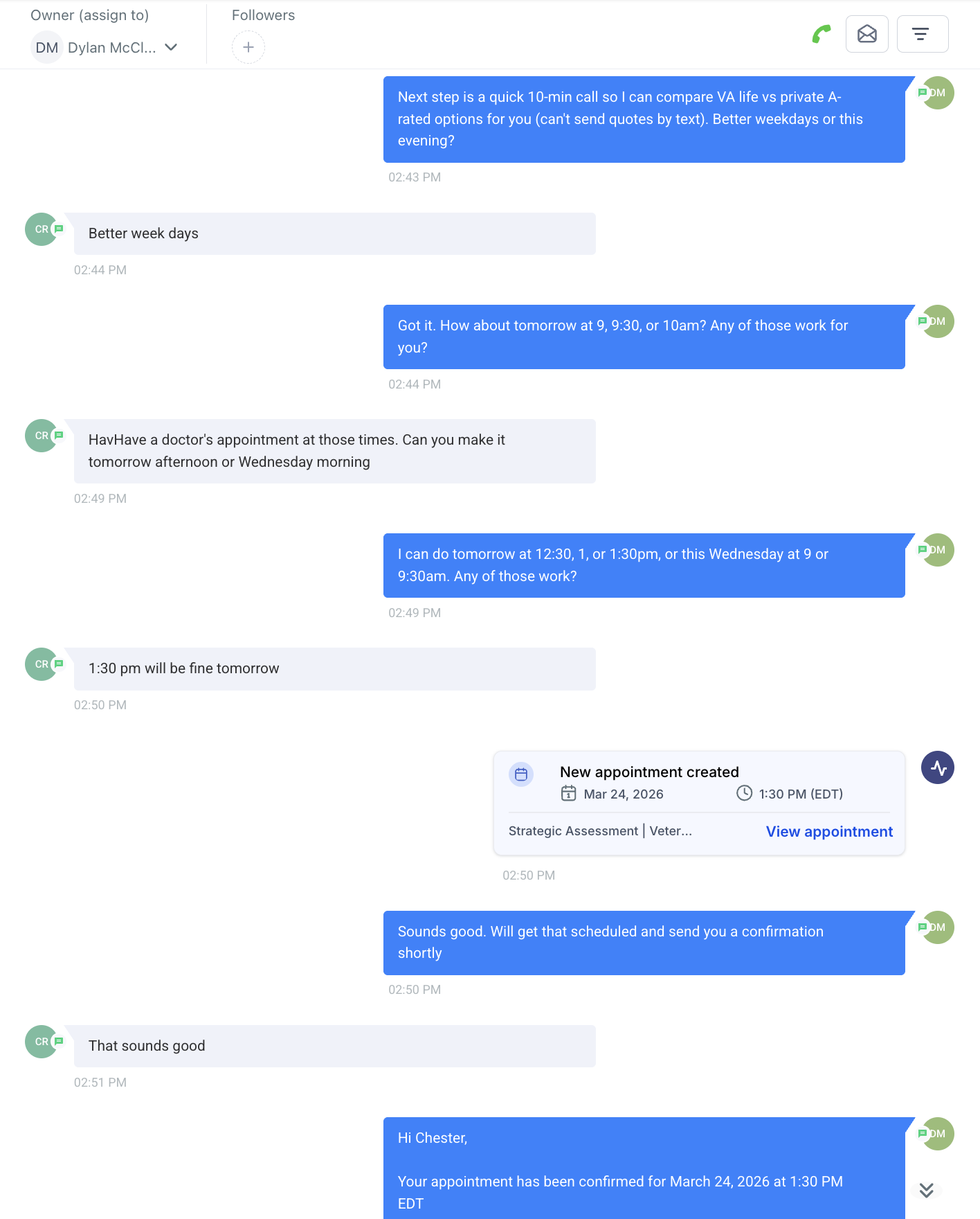 Real conversations from our AI agents. These are actual appointment-setting dialogues with veterans.